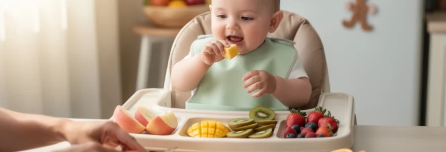 Concrètement, on peut proposer des bâtonnets de banane, des quartiers de poire pelée ou des lamelles épaisses de mangue, toujours très mûres. Ces formes préhensibles offrent une excellente occasion de développer la coordination main-bouche, la motricité fine et les capacités masticatoires. Vous remarquerez peut-être que bébé suce d’abord le fruit avant de commencer à le mâchouiller : c’est une étape normale et importante de l’apprentissage.